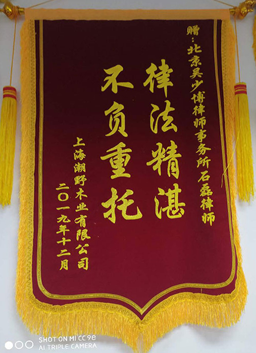• 張帆收到石家莊客戶贈送的錦旗