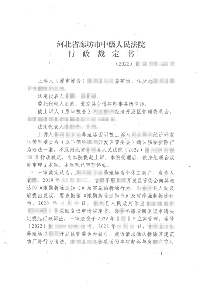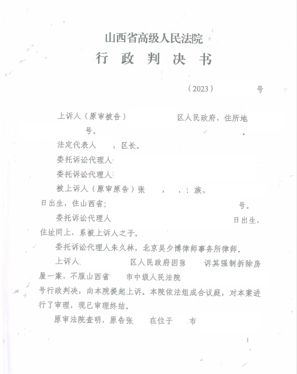 本案代理律師 北京吳少博律師事務所張弛 案情摘要: 宅基地強制騰退 當事人遭受言語威脅失