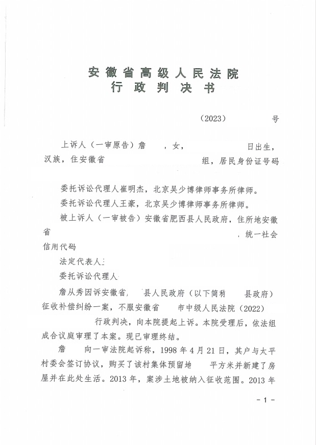 本案代理律師 北京吳少博律師事務所郭昌通 案情摘要: 無證房居住多年未辦證 被確認為違建